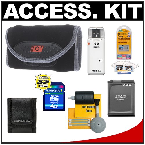MADE Always On Wrap-Up Compact Digital Camera Case (Black) + EN-EL12 Battery + 4GB SDHC Card + Cleaning Kit for Nikon Coolpix S1000pj, S1100pj, S70, S630, S640, S5100, S6000, S8000 & S8100 Digital Cameras Review
